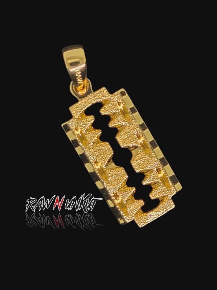 Gold or Silver RAW N UNKUT nugget RAZOR BLADE PENDANT